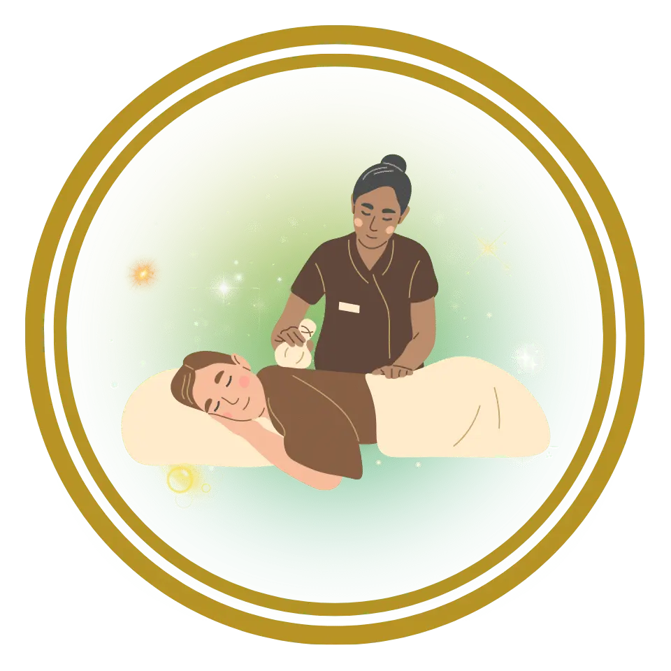 Nach traditioneller Thai-Massage wird der Körper mit warmen Kräuterstempeln abgetupft, stimuliert die Blutzirkulation, entspannt Muskelgewebe und lindert Muskelkater.
