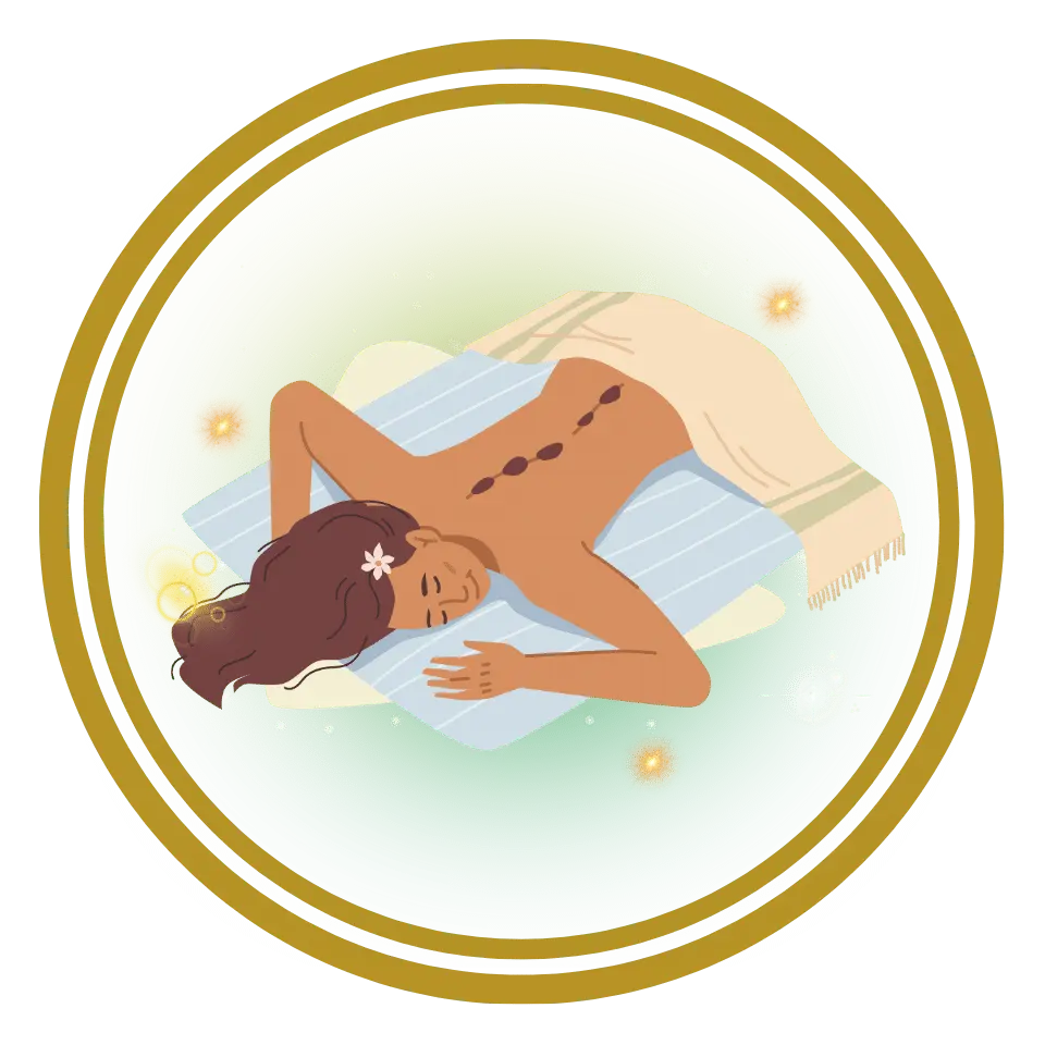 Hot-Stone-Massage mit warmen Ölen und Lava-Steinen: Tiefe Entspannung, löst Verspannungen, fördert Stoffwechsel, Blutzirkulation und aktiviert sanft die Sauerstoffversorgung der Zellen.